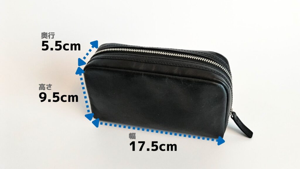 ボックスポーチのサイズは奥行5.5cm×高さ9.5cm×幅17.5cmで口が大きく開くようにジッパーが設けられています。